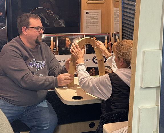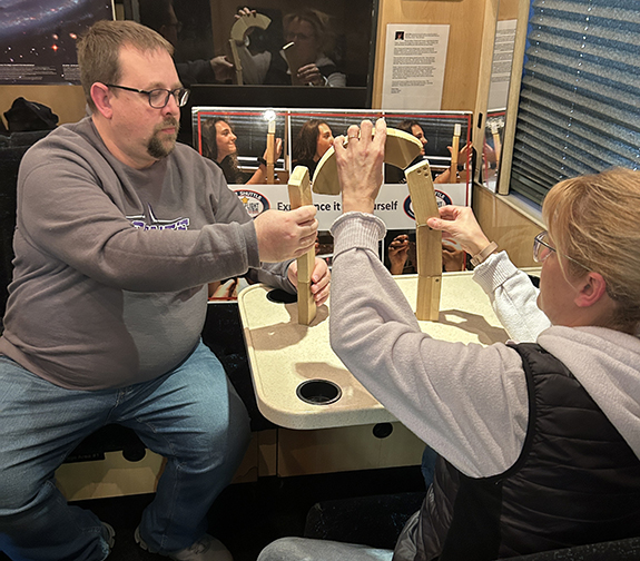 On Wednesday, Dec. 17, teachers became students and were challenged by the hands-on workstations on board the STEM Shuttle. The event was held at the Learn Build Fly location at the Downtown Wausau Airport, and was coordinated by Tera Fiera, associate director of Continuous School Improvement Services for CESA 9.